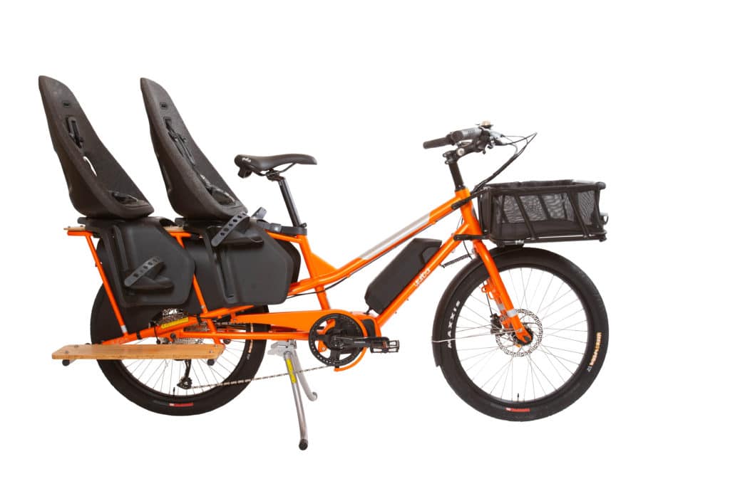 Avec le Longtail Yuba Kombi on peut oublier les monospaces et autres minibus. Le Kombi est la combinaison ingénieuse des vélos Yuba les plus populaires en un nouveau vélo cargo pratique, maniable, facile à partager, solide, et surtout abordable. Le Kombi c’est partager des moments de bonheur, partir en week-end, en voyage en train ou même en vacances le long de la Loire. C’est le moment de chevaucher le Kombi avec son cadre renforcé, ses freins à disques, ses roues passe-partout et tous les accessoires adaptables. Pour tout transporter en toute sécurité à un prix attractif !